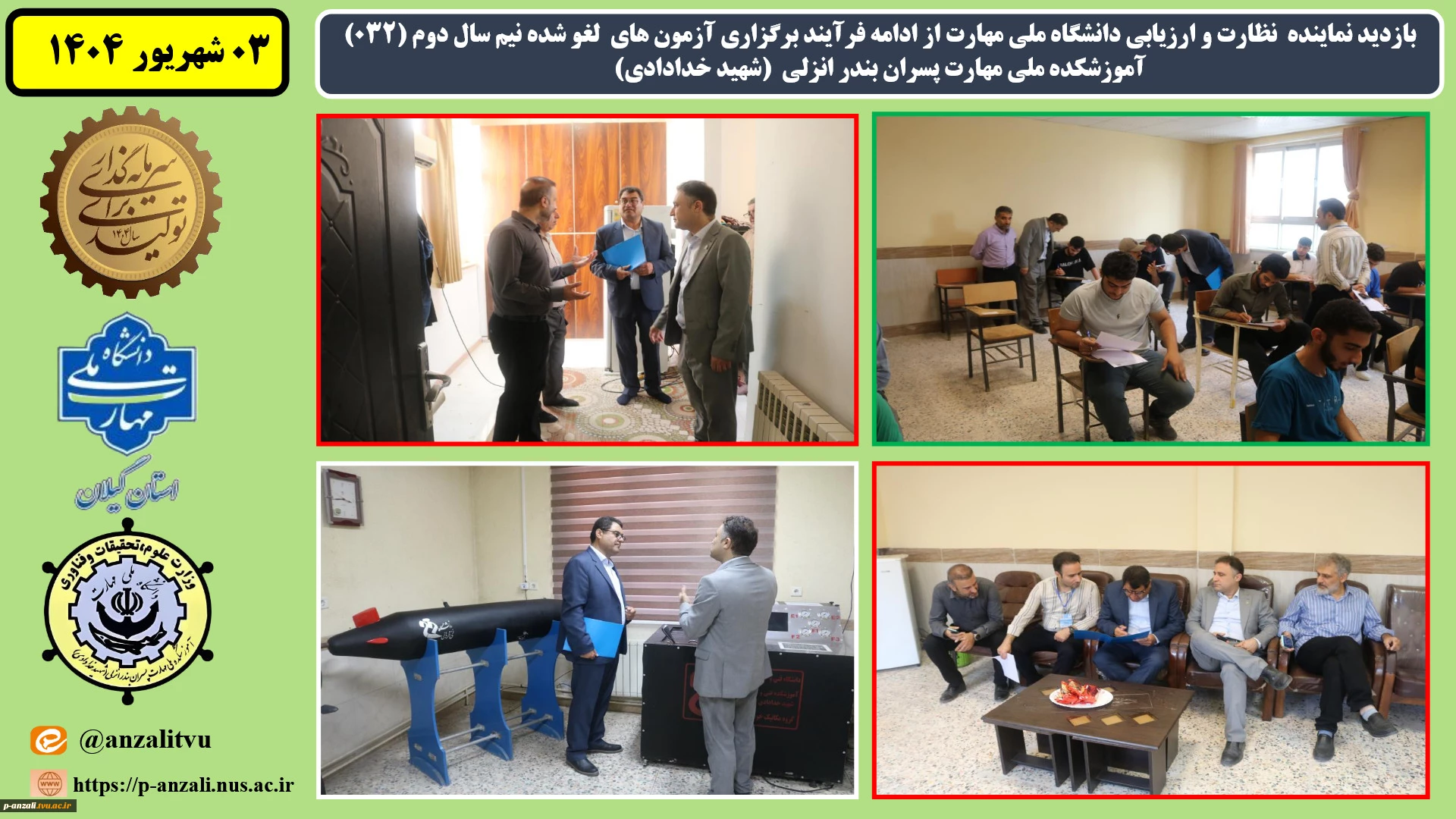 بازدید نماینده  نظارت و ارزیابی دانشگاه ملی مهارت از ادامه فرآیند برگزاری آزمون های  لغو شده نیم سال دوم (032) آموزشکده ملی مهارت پسران بندر انزلی  (شهید خدادادی)