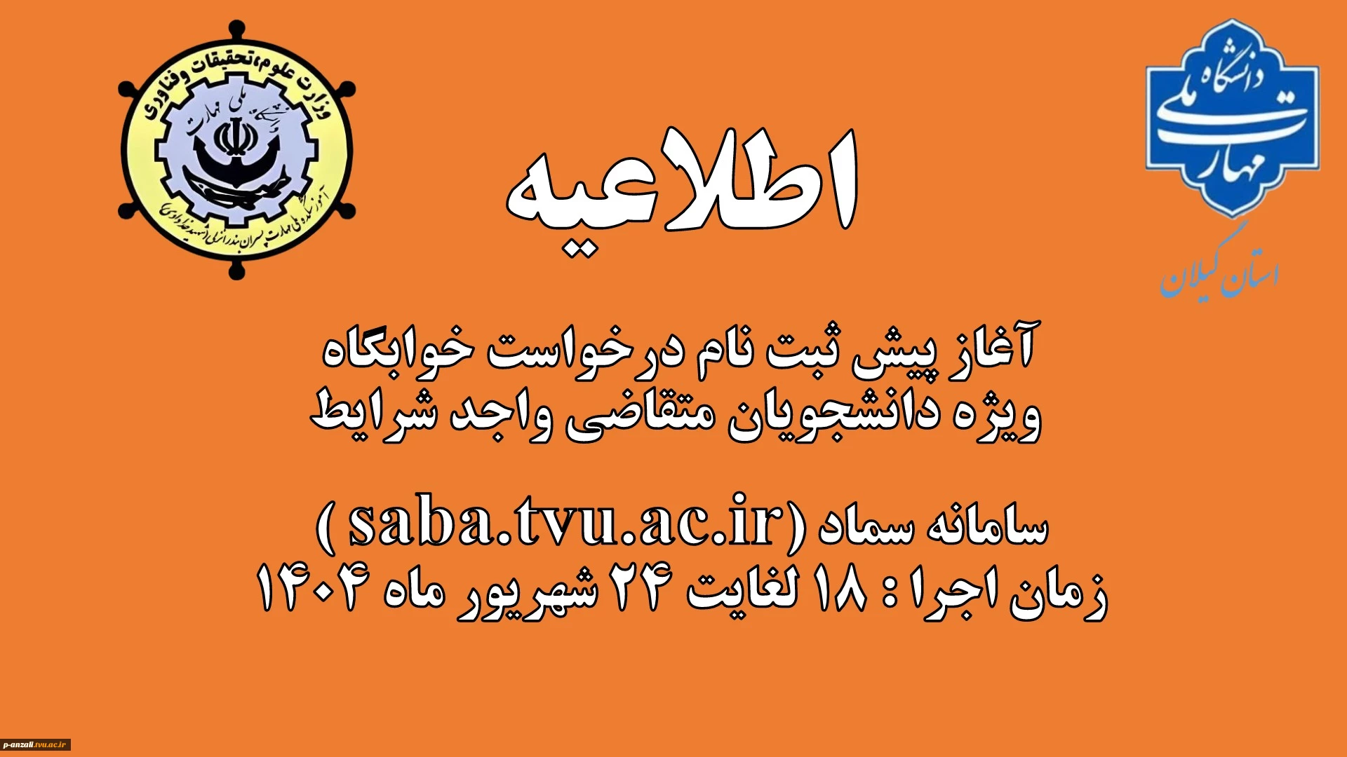 امتیاز دهید : آغاز پیش ثبت نام درخواست خوابگاه ویژه دانشجویان متقاضی واجد شرایط 2 دوشنبه 17 شهریور 1404 ساعت 12:29