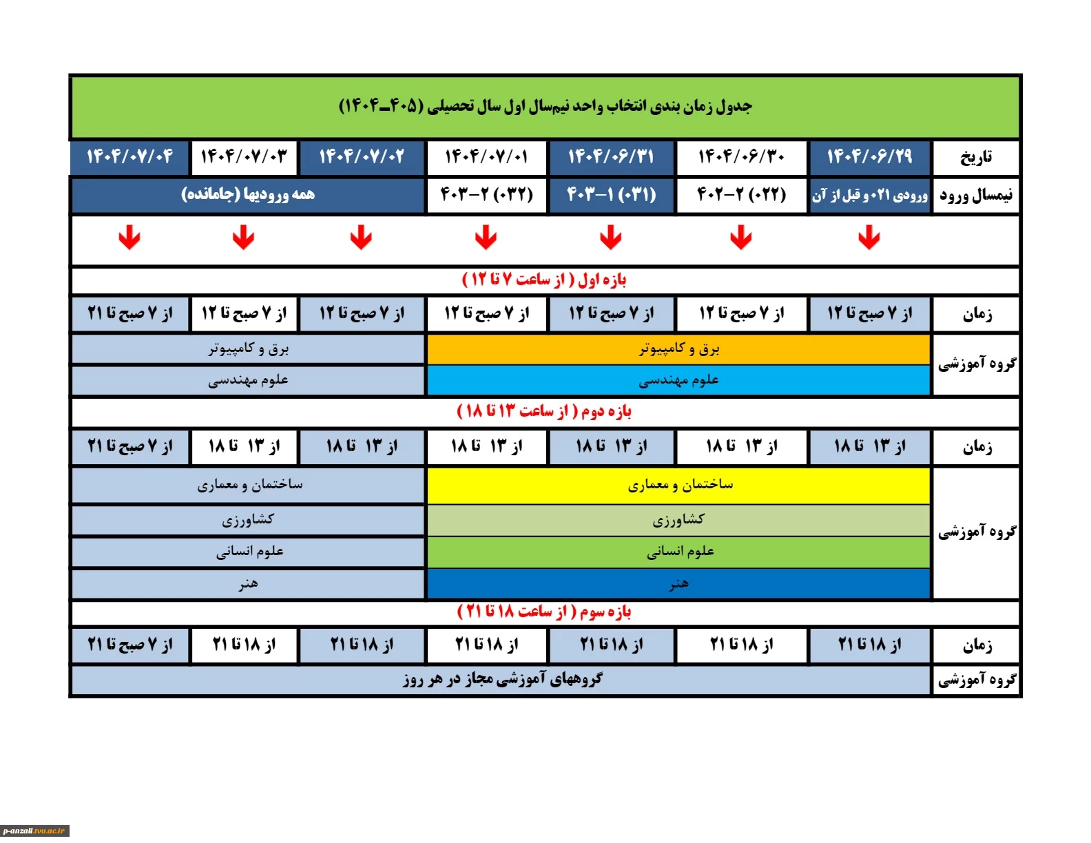 جداول انتخاب واحد و حذف واضافه 1404 2