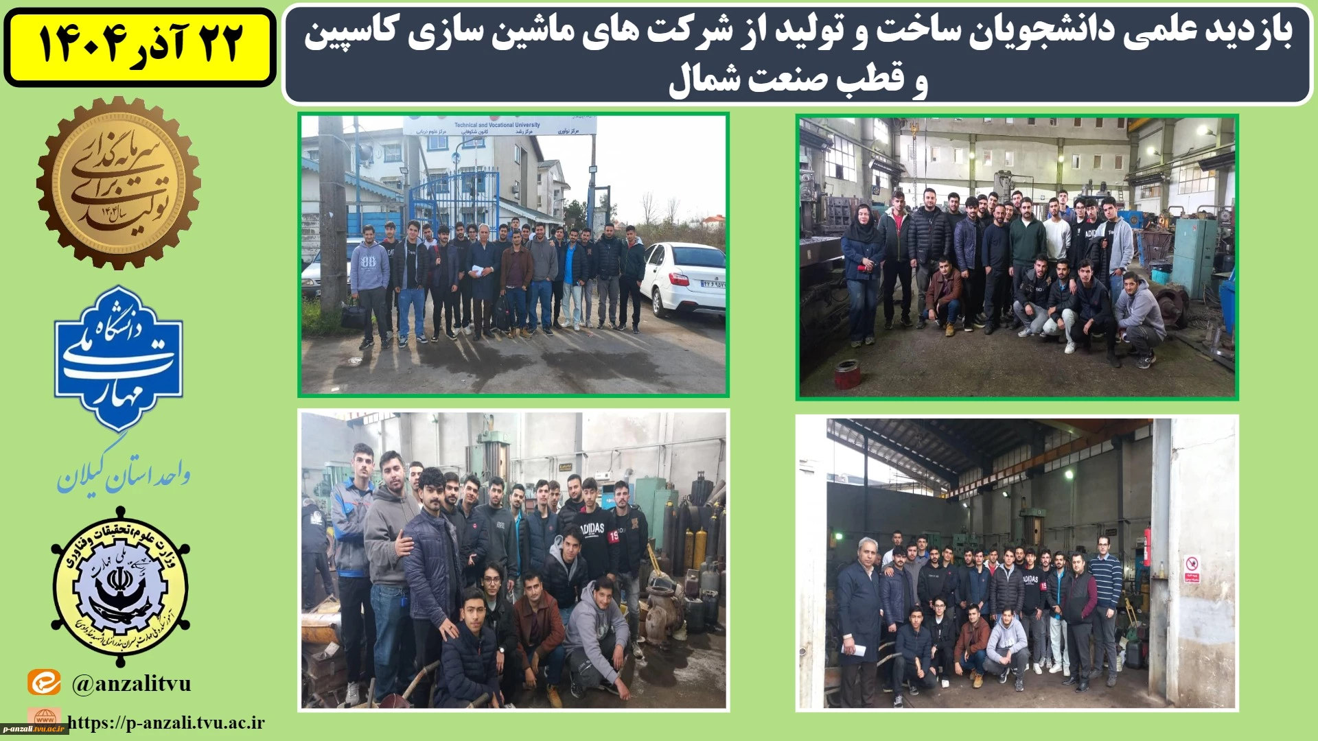 امتیاز دهید : بازدید علمی دانشجویان ساخت و تولید از شرکت های ماشین سازی کاسپین و قطب صنعت شمال به مناسبت هفته پژوهش 2 یکشنبه 23 آذر 1404 ساعت 12:25