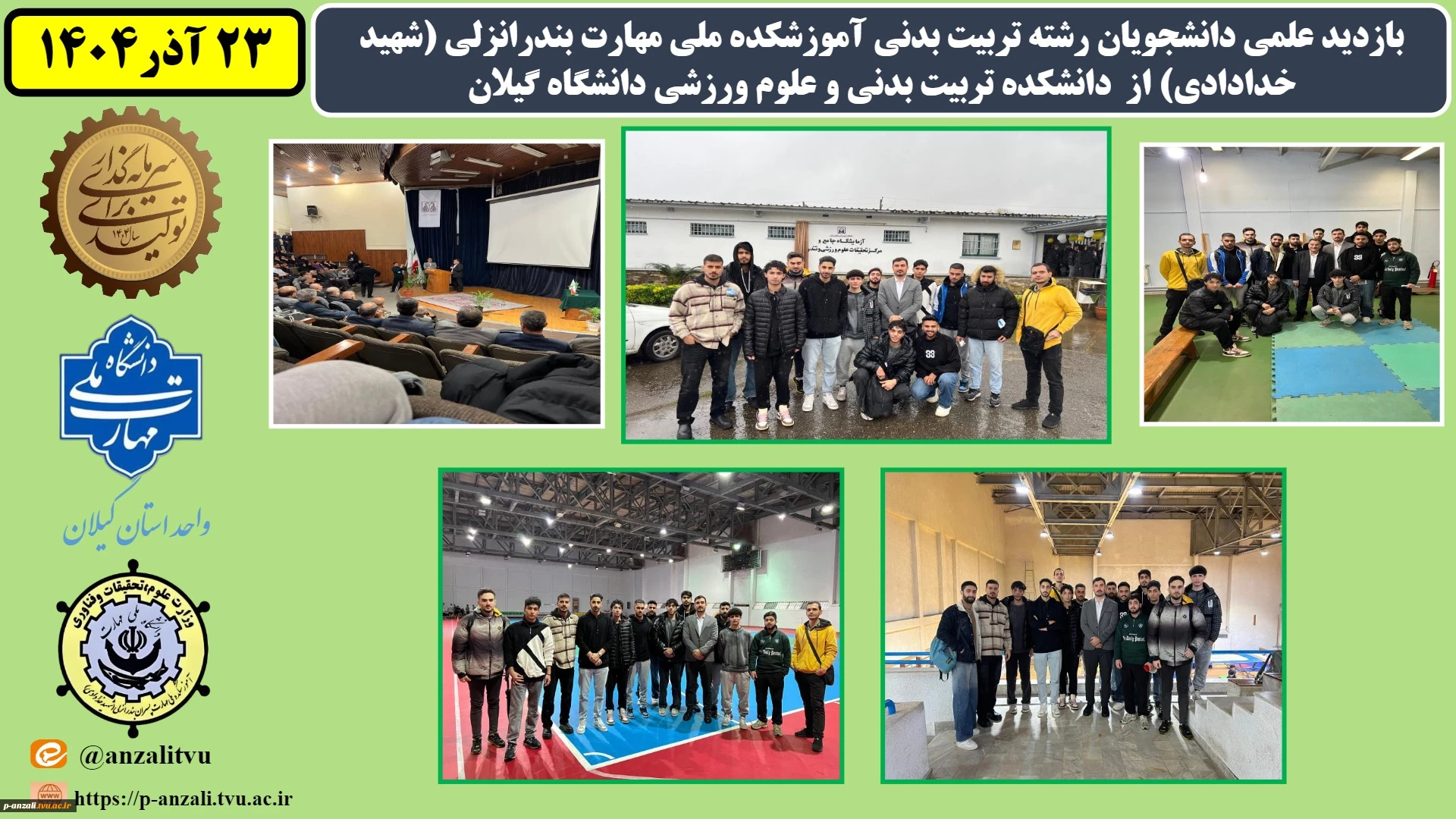 امتیاز دهید : بازدید علمی دانشجویان رشته تربیت بدنی آموزشکده ملی مهارت بندرانزلی (شهید خدادادی) از دانشکده تربیت بدنی و علوم ورزشی دانشگاه گیلان 2 دوشنبه 24 آذر 1404 ساعت 12:47