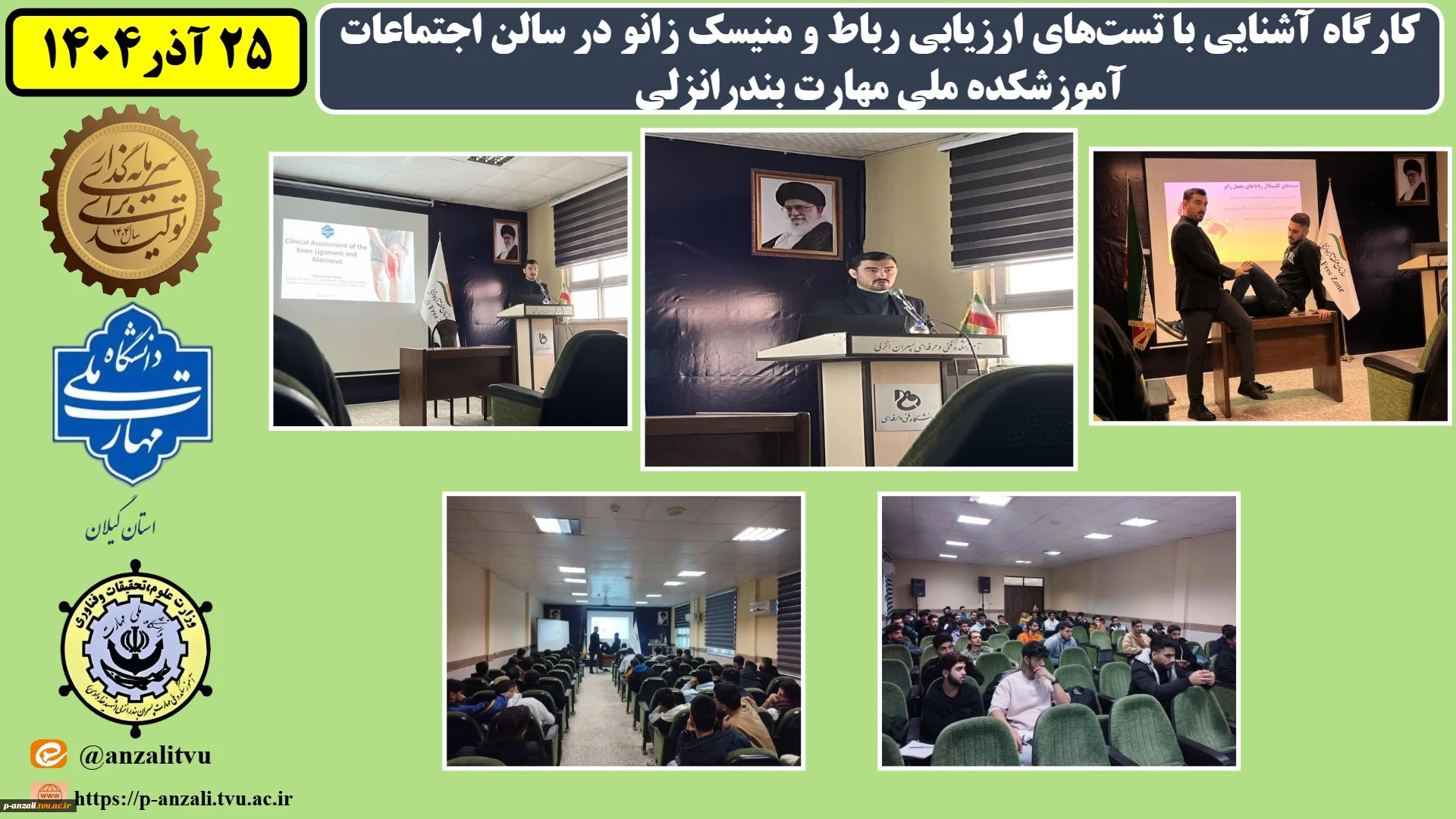 امتیاز دهید : کارگاه آشنایی با تستهای ارزیابی رباط و منیسک زانو در سالن اجتماعات آموزشکده ملی مهارت بندرانزلی به مناسبت هفته پژوهش 2 چهارشنبه 26 آذر 1404 ساعت 7:20