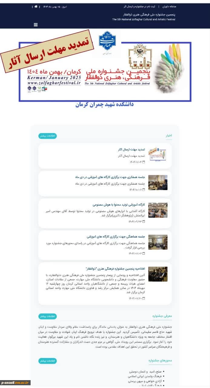 تمدید مهلت آثار پنجمین جشنواره فرهنگی هنری ذوالفقار 2